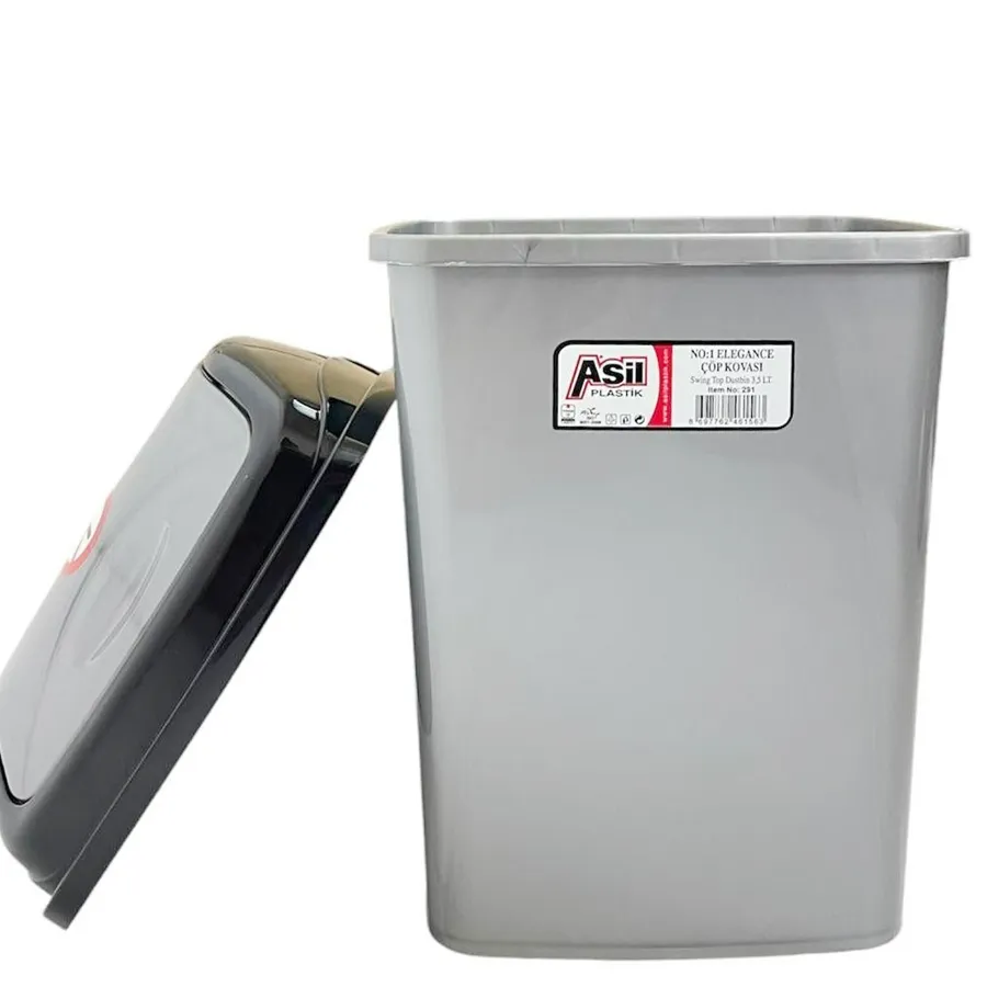 سلة مهملات بلاستك رمادي غامق حجم كبير