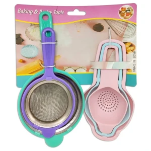 مصافي بأحجام مختلفة وملاعق مثقبة