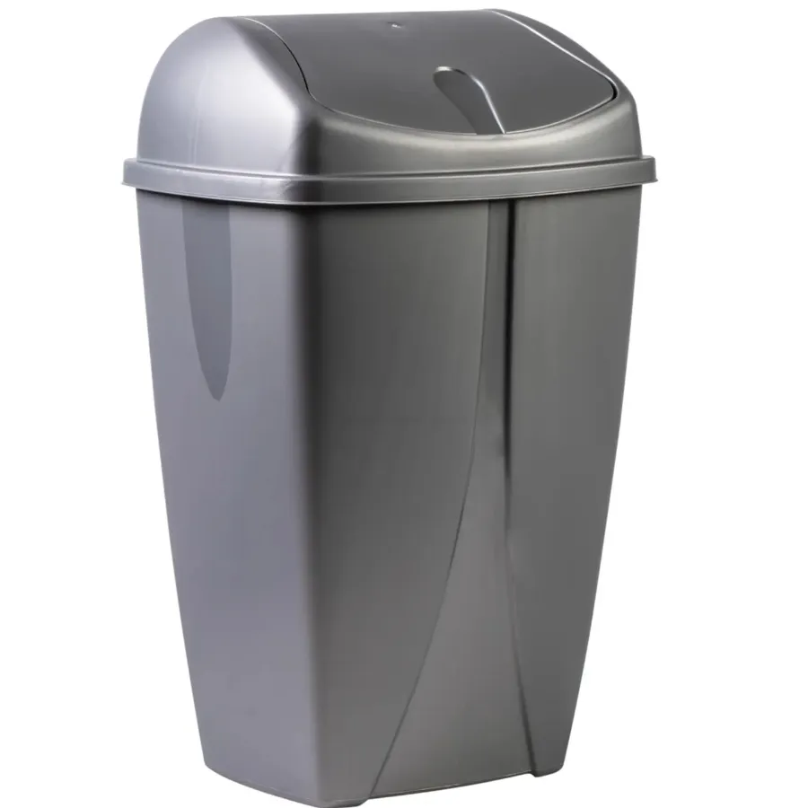 سلة مهملات بلاستك رمادي غامق حجم كبير